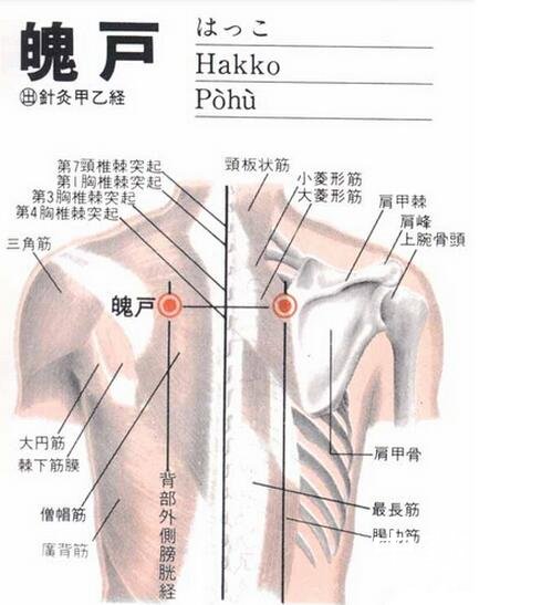 针刺魄户穴的方法:魄户穴斜刺0.3-0.5寸,局部酸胀; 不可深刺,以防气胸。