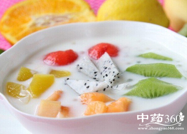制法:番薯切成小方块,隔水蒸熟;火龙果切成与番薯同等大小的方块,与蒸熟了的番薯一起装碗,淋上牛奶即可(喜欢甜食者,可用甜牛奶)。