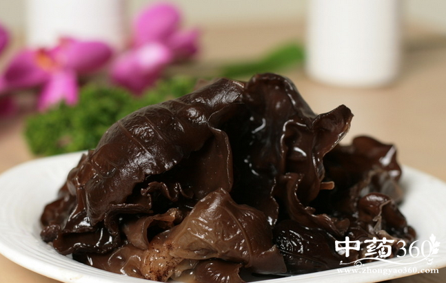 黑木耳中的胶质,有润肺和清涤胃肠的作用可将残留在消化道中的杂质、废物吸附排出体外;据美国明尼苏达大学医学院的研究发现,黑木耳内还有一种类核酸物质,可以降低血中的胆固醇和甘油三酯水平,对冠心病、动脉硬化患者颇有益处。黑木耳中的多糖有抗癌作用,体内球蛋白的组成成分有显著增加,从而增强了抗体,可以作为肿瘤病人的食疗。