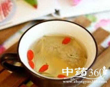 原料:枸杞5g、白芍3g、绿茶3g、冰糖10g。
