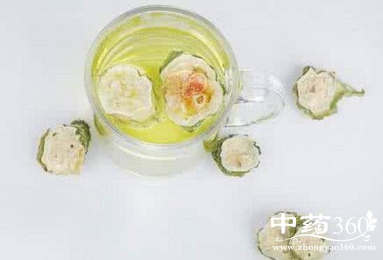 制作:1.苦瓜上端切开,挖去心,装入绿茶,挂阴凉通风处阴干。2.取下洗净,连同茶叶切碎,拌匀。