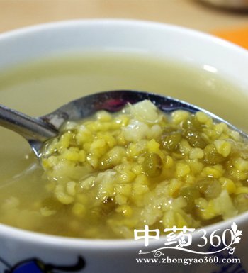 制作:将淘洗干净的大米和绿豆加入适量水煮沸,再以慢火煮烂;撒上杏仁片,加白糖少许调匀晾凉食用即可。
