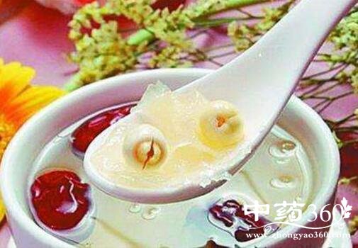【材料】莲子60g,芡实40g,麦冬30g,枸杞子20g,蜜枣适量。