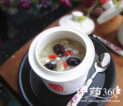 做法:银耳20克,红枣10克,糯米150克。按常法煮粥。