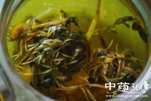 做法:将蒲公英洗净,放入锅中,加水淹过蒲公英。大火煮沸后盖上锅盖,小火熬煮一小时。滤除茶渣,待凉后即可饮用。