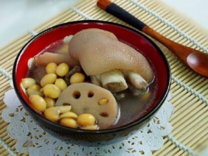 大豆的食疗功能增强机体免疫功能。大豆所含氨基酸品种最齐全,赖氨酸含量最高,与谷类混食可发挥赖氨酸互补作用,是植物食物中营养的最佳搭配。大豆粉(赖氨酸含量高)与谷物粉(赖氨酸含量低)混合做面包、糕点可制成婴儿和病人理想的营养食品。