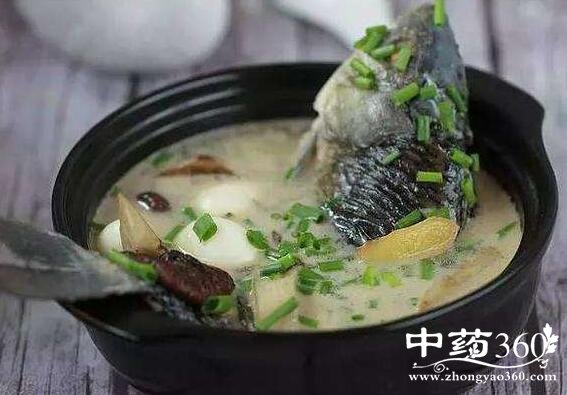 方法:将纱布袋、葱姜放入鱼腹内,葱油将鱼略煎熟,加水煮沸待汤呈乳白色即可,分2-3次食用。