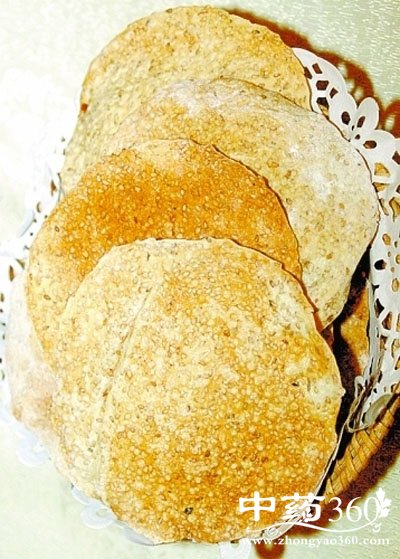 【制法】将锅焦放入锅内炒黄,然后把锅焦、神曲、山楂肉、砂仁、莲子肉、鸡内金一同放入碾槽内,共研为细粉,与大米粉及白砂糖拌和均匀,加水适量,揉成面团,如常法做成小饼,放入锅内,烙熟即可。