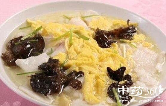冬瓜150克,水发木耳150克,海米15克,鸡蛋1个,食盐、水淀粉、味精、麻油适量。冬瓜去皮洗净切片,木耳、海米洗净备用。鸡蛋打匀摊成蛋皮切宽片备用。锅内加鲜汤上火烧开,下海米、木耳煮沸5分钟,再将冬瓜放入,开锅后撒入食盐、淀粉,起锅前倒入蛋皮,淋上麻油即成。可生津除烦、清胃涤肠、滋补强身。
