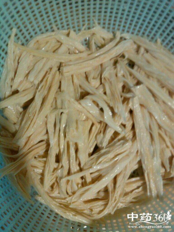 3、基本泡发后,切成细丝再在温水中泡二十分钟,泡出来的腐竹就相当完美了。