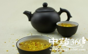 选用干桂花1克,茶叶2克。将干桂花、茶叶,入杯中,沸水冲泡6分钟,即可饮用。早晚各饮1杯。