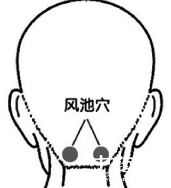 风池穴在颈后发际的两侧凹陷处,位置在两块肌肉之间。揉压风池穴一分钟,能够缓解颈椎压力所导致的头晕等症状。