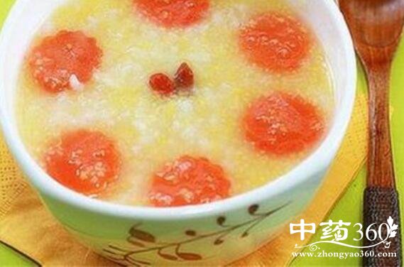 胡萝卜粥:鲜胡萝卜120克切碎,同粳米100克煮粥,有健胃补脾、助消化、预防高血压的功效。