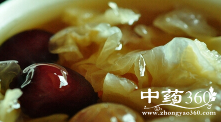 功效:银耳的营养价值和燕窝同等,但是价格则是便宜的多,所以也被称之为穷人的燕窝。中医方面认为,银耳具有很好的润燥以及保健的作用,特别适合治疗那些由于燥气以及火气所引起的慢性急性病。红枣和枸杞则是具有很好的补血作用。所有的食材混合在一起之后,补气养血的作用则是加倍提升。
