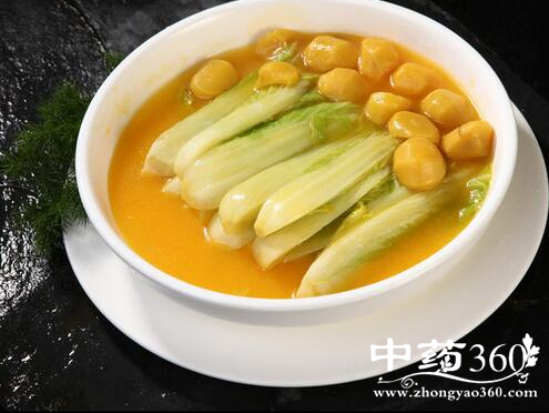 制法为:生栗子200g,去壳,切成两半,用鸭汤适量喂至熟透,再放入白菜条200g,盐、味精少许,白菜熟后勾芡。鸭滋阴补虚,栗子健脾补肾,白菜补阴润燥,综合功效使面色白哲明亮。