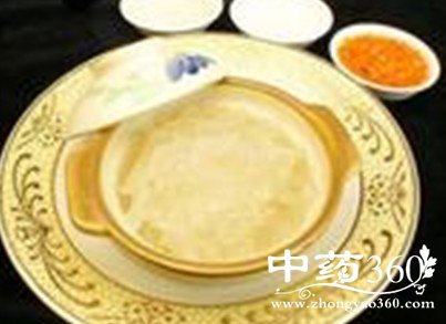 制作:先将雪蛤膏去除杂质,用清水浸泡发透,再用清水清洗干净备用。玉竹、薏米用清水洗净。水鸭剖杀,去除内脏用清水洗净血污,砍成大块。以上各物准备就绪后,一同放入瓦锅,加适量清水,先用武火,再用中火煲一个半小时。待温,加食盐调味饮食。