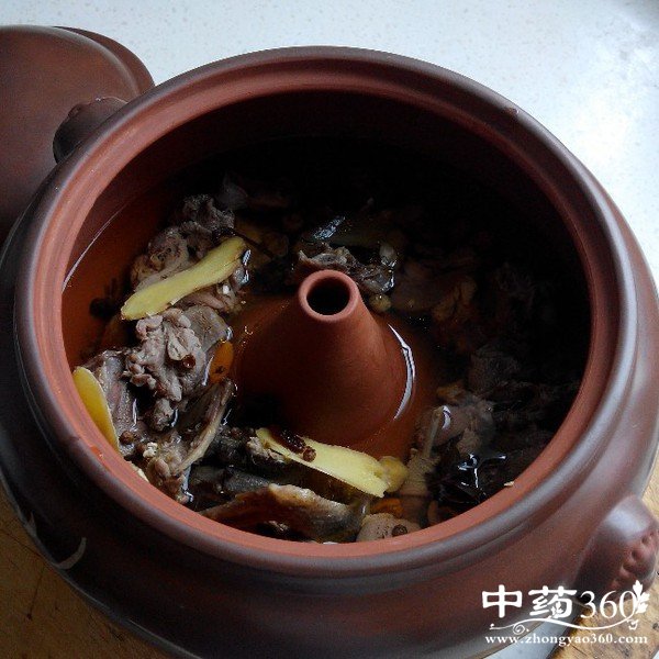 2、汽锅洗净,放入鸡块,铺上火腿片、冬笋片、冬菇片、姜片,加绍酒、盐,盖好锅盖,将汽锅置于蒸锅上,蒸两三小时即成。如用于食疗,可分别加进一定数量的虫草、人参或田七蒸制。
