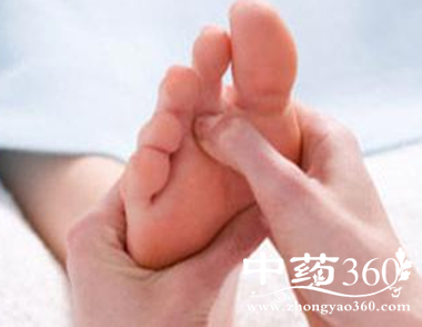 第二个是涌泉穴。 脚掌前部1/3处(不算脚趾)、脚缘两侧连线处就是此穴。《黄帝内经》中提到“肾出于涌泉,涌泉者足心”,就是说肾经之气犹如源泉之水,涌出灌溉周身四肢各处。这个穴位对于滋阴降火很有意义,可以缓解上火引起的口干、眩晕、焦躁等。方法是将拇指放在穴位上,用较强的力气揉20~30次,晨起和睡前按摩效果较好。