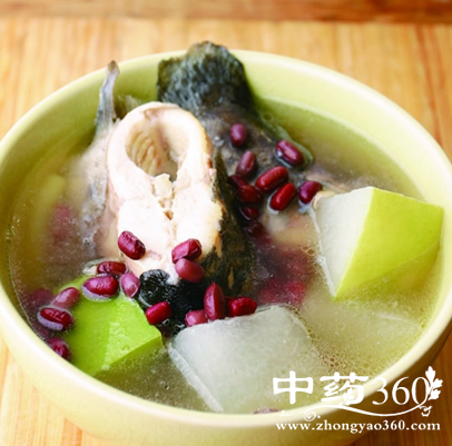 作法:红小豆清洗,东瓜清洗,连皮切,生鱼清洗,宰净去鳞、内脏器官,温火煎至淡黄。瘦猪肉清洗,一整块无需刀割。一起与姜片放入瓦锅内,加冷水2500ml(约10碗水)。文火煲沸后改慢火煲两个三十分钟,加入适当盐、油便可。