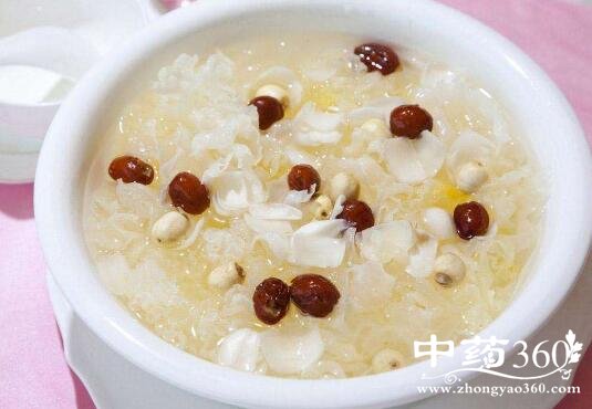 莲子50克,百合50克,猪瘦肉250克切块,加水煲汤。