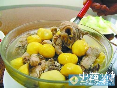 功效:母鸡肉与栗子合用,助其健脾益肾之功.慢性肠胃炎患者和肾亏尿频,腰腿无力者均可食用,疗效显著.