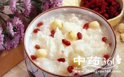 枸杞子30克、核桃仁5个、黑豆150克、米适量,共煮粥加糖食之。