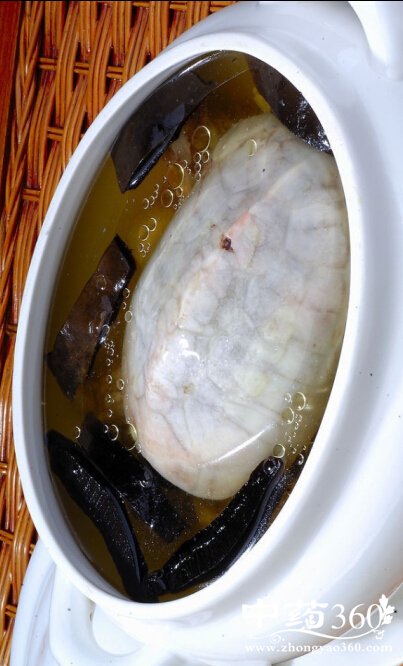 制作方法:玉竹洗净,稍浸泡;猪板骨洗净,用刀背稍敲裂;水龟置盆中淋入热水,使其排清尿液,洗净,宰净去头、爪和内脏。然后与生姜一起置炖盅内,加入冷开水1250毫升(约5碗水量)和少许油,隔水炖3小时便可。进服时方调入适量食盐。