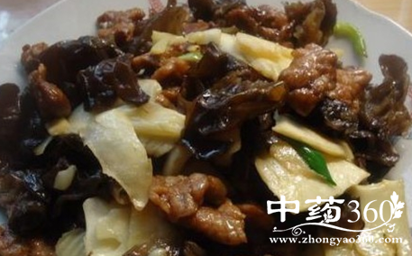 因为春笋与黑木耳皆有清热凉血、补肝肾的作用,而黑木耳含有的植物胶质有较强的吸附力,可吸附残留在人体消化系统内的杂质,清洁血液,经常食用还可以有效清除体内污染物质。再加上猪肉性凉养阴,三者合一可起到益气补肾、通便排毒的作用。