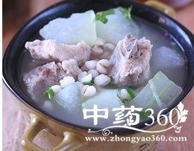 原料:排骨250克,冬瓜500克,薏米适量,食盐适量