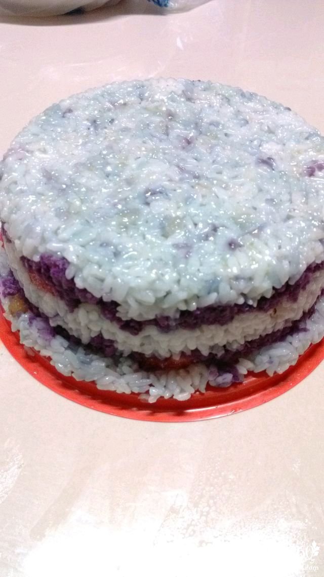 5.放一层糯米,压紧一层。(一定要压实)