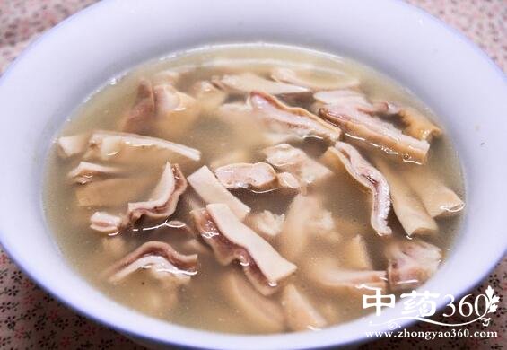白胡椒30至50粒,猪肚1个,食盐、料酒、味精各少许。先将猪肚洗净(可加盐、醋并用开水烫洗),锅内注水,猪肚块(或丝)下锅,加入白胡椒,煲两个小时左右,汤稠肚烂时,加入食盐、料酒、味精即可食用。此汤可在饭前饮用。胡椒性温热,有温中散寒作用;猪肚有健胃养胃的功效。