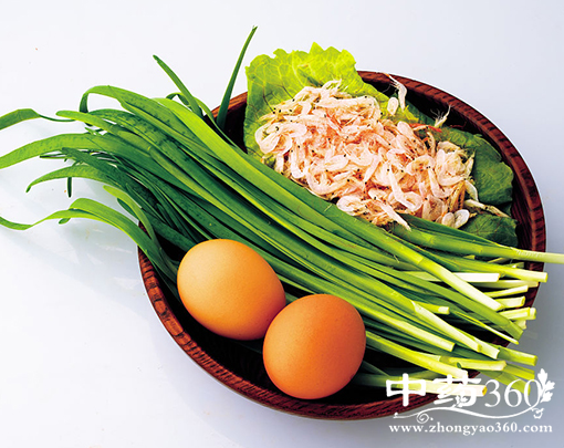 3.炒勺仿佛植物油烧热后,加入韭菜,用旺火速炒、放盐,快熟时倒入鸡蛋,颠翻两下,即可出锅装盘。