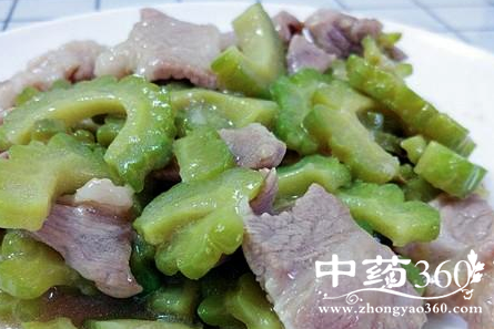 瘦肉洗净切片,用淀粉酱油腌制。苦瓜切片,用盐水浸泡,去除苦味和涩味。锅内热油煮沸,加入瘦肉翻炒几下,再加入苦瓜翻炒,加入适量水翻炒,加盐调味。苦瓜不仅防癌,还具有清热利湿、益气降压、降血糖、除湿的功效。多吃苦瓜,可以很好的去除水分。