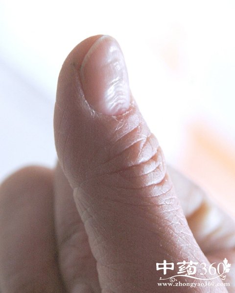 通常指甲占手指未节约3/5,呈长方形拱起,顶端横径稍大于基部横径,指甲基部的白色像半月形部分称指甲半月,也就是民间俗称的甲白,恰位于各指中央对称,无大的偏移。