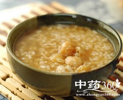 龙眼肉25克、糯米40克,粥成入龙眼肉即可。