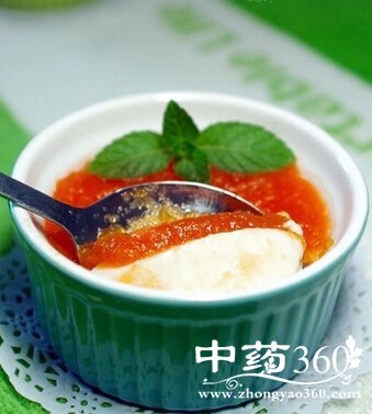 功效:木瓜拥有多种维他命B群、胡萝卜素等营养,加上所含的特殊蛋白酶,能够快速吸收鲜奶中的蛋白质。而蛋白质可以促进肌肤新陈代谢正常,保持弹性,提供抗老化、抗氧化的全面性功能。这道浓、醇、香、滑的甜品,早上起来吃一盅,绝对是超幸福的事喔!