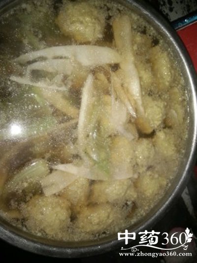 2、锅内加水约4~5碗,放入药袋和笋丝,用中火煮20分钟,即可喝汤吃笋。