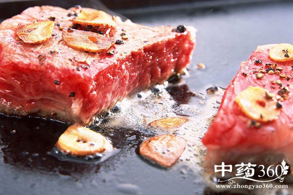 3、温度:煎牛排要注意锅的温度,要烧烫看到微微冒起青烟时放入牛排。改小火加热,慢慢煎烤,让热能传输到肉的内部。花纹上,要旋转70度。