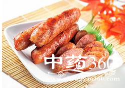 香肠【别名:腊肠、南肠、灌肠】香肠是一种利用非常古老的食物生产和肉食保存技术,以猪或羊的小肠衣(也有用大肠衣的)灌入调好味的肉料干制而成。中国的香肠有着悠久的历史,香肠的类型也有很多,主要分为川味儿香肠和广味儿香肠。香肠一般指猪肉香肠,全国各地均有生产。世界上最长的香肠是2008年12月27日,在罗马尼亚首都布加勒斯特,厨师用70公斤肉、蒜等配料制成一根392米长的香肠,从而打破世界记录。
