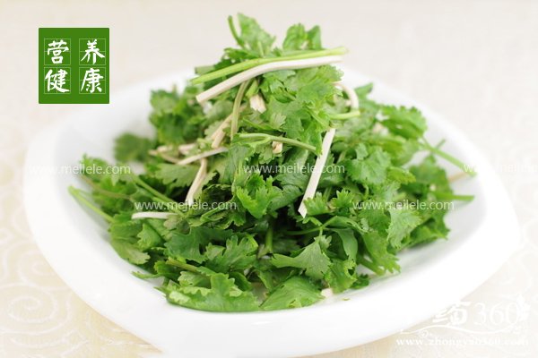 香菜食性温,味辛,有芳香气味,具有通心脾、解毒的功能。