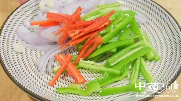 2、火腿,杏鲍菇切片,青椒,红椒,洋葱切丝,备用;