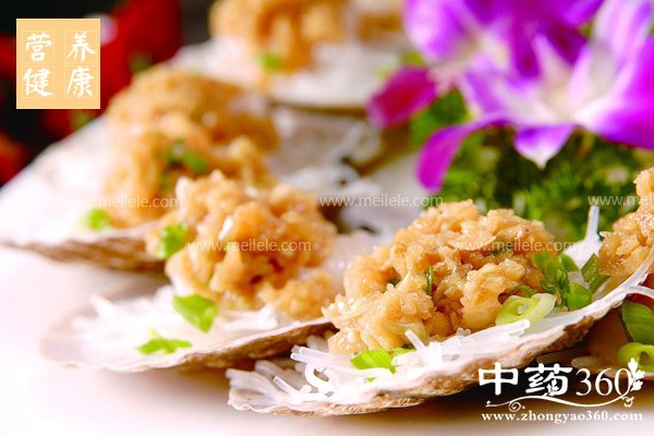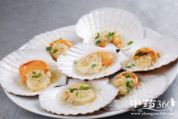 扇贝8只,粉丝一把,大蒜、料酒、食盐、蒸豆豉鱼油适量,粉丝用水泡软,用调料拌好粉丝铺在贝肉上,将扇贝放入盘子蒸熟即可,具有补脾益肾的作用,是补肾佳品。