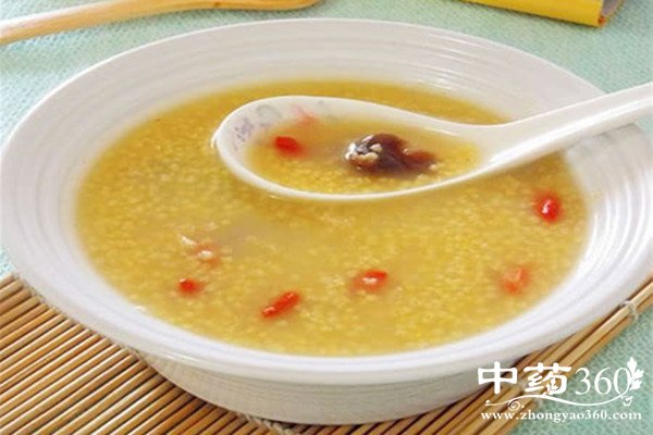 小米120克、干桂圆肉60克、枸杞和白糖适量