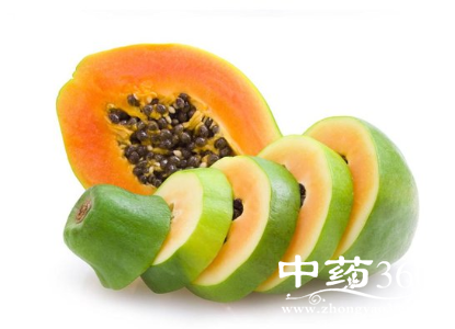 木瓜性温、味酸,入肝、脾经; 具有消食,驱虫,清热,祛风的功效; 主治胃痛,消化不良,肺热干咳,乳汁不通,湿疹,寄生虫病,手脚痉挛疼痛等病症。