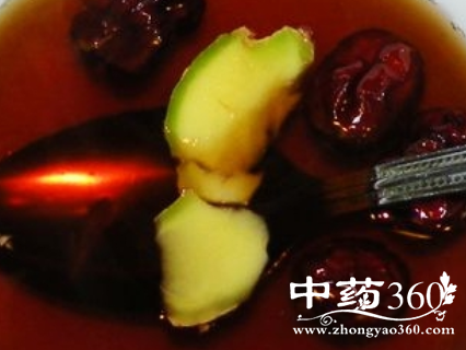 将前两味洗净,干姜切碎末,大枣去核,加红糖煎,喝汤,吃大枣。