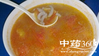 c、然后在放入切好的西红柿,在切四片姜片放入,然后在煲10分钟左右;