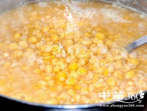 2、 泡好的豌豆,捞出后下锅快速烧开,煮豆子的水可以多点。