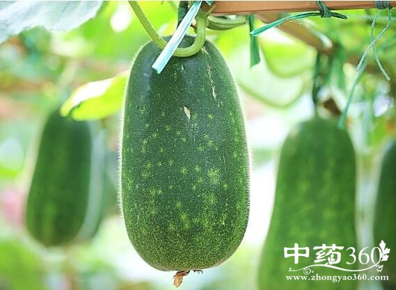 冬瓜全身都可入药:冬瓜皮利水消肿、清热解暑,常用于水肿和体虚浮肿等,还可用于催乳;冬瓜子功效为清肺化痰、利湿排脓,应用于肺热咳嗽、带下白浊等;冬瓜肉有利水、清热、消痰、解毒的功效,可治水肿、咳喘、暑热、消渴、泻痢、痔漏等,还可解酒毒、鱼毒等。