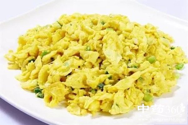 鸡蛋炒至凝固后撒少许盐调味出锅即可