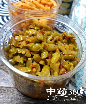酸豆角单独食用,作为零食,有可口开胃的效果。